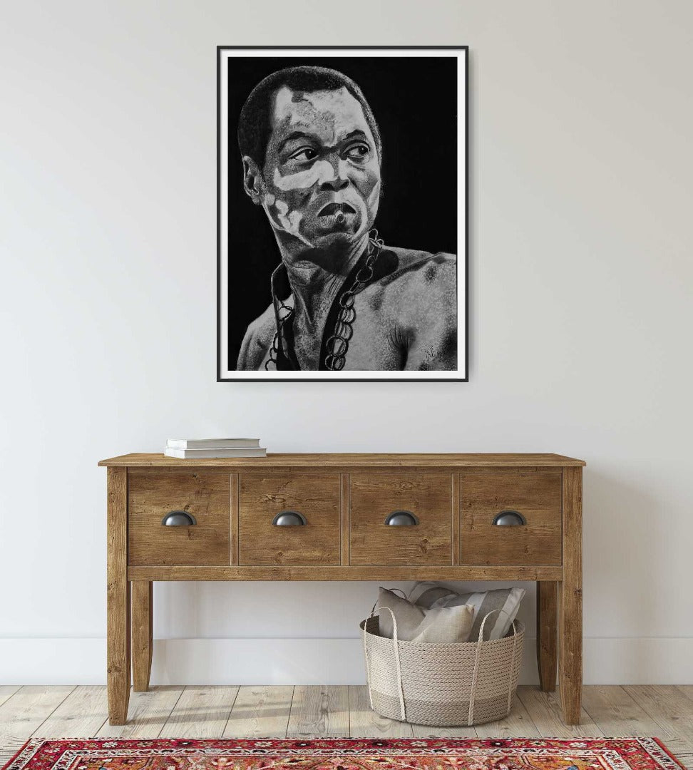 Make a statement in any room with this framed Artprint of the legendary Fela Kuti on high-quality paper, with a partly glossy, partly matte finish.